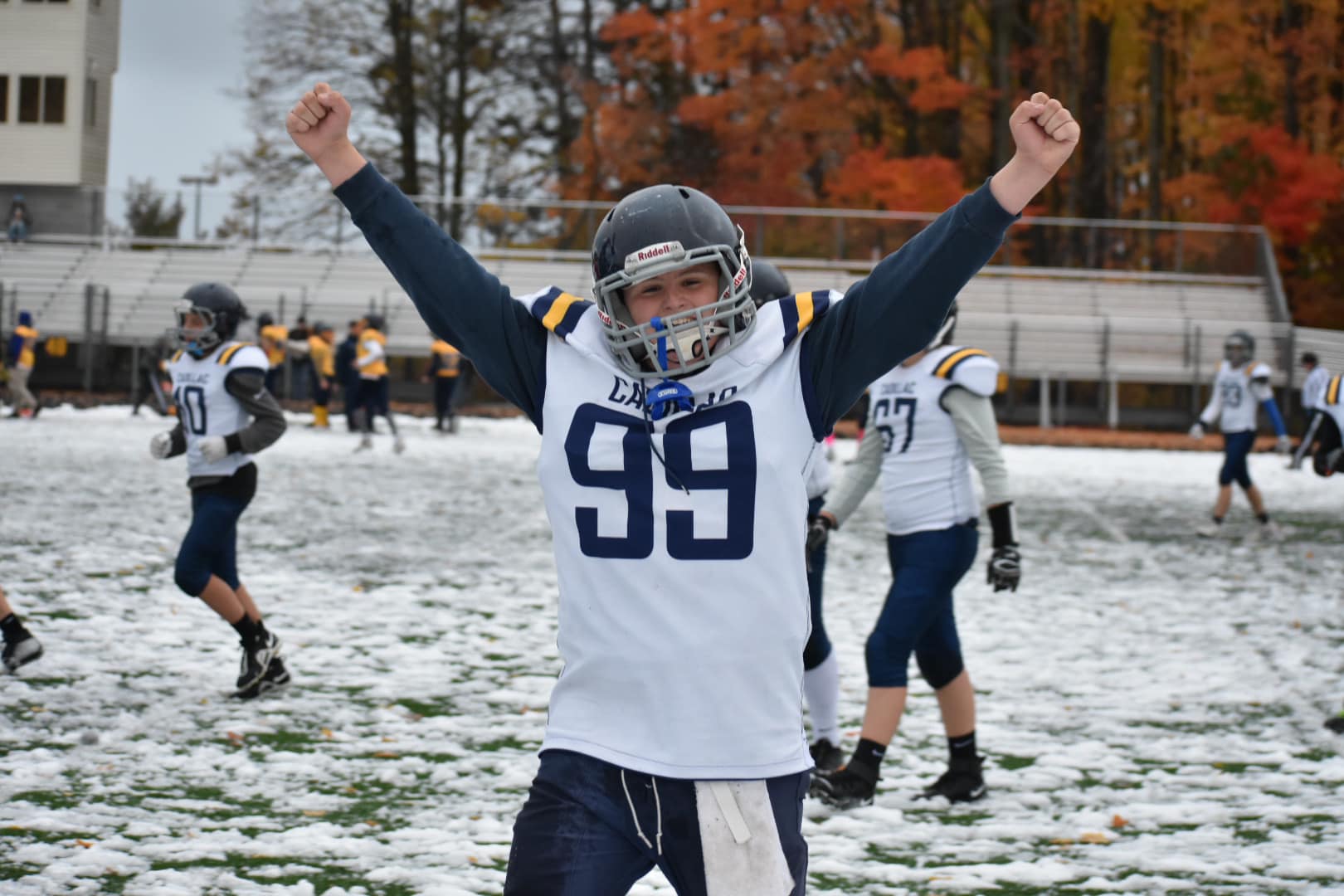 Had such a fun and memorable conclusion to our Jr. High football season last night as we “got to” play in the snow in Gaylord. It has been a true joy to be a part of coaching these young men. Thank you Angela Metzger for the photos.