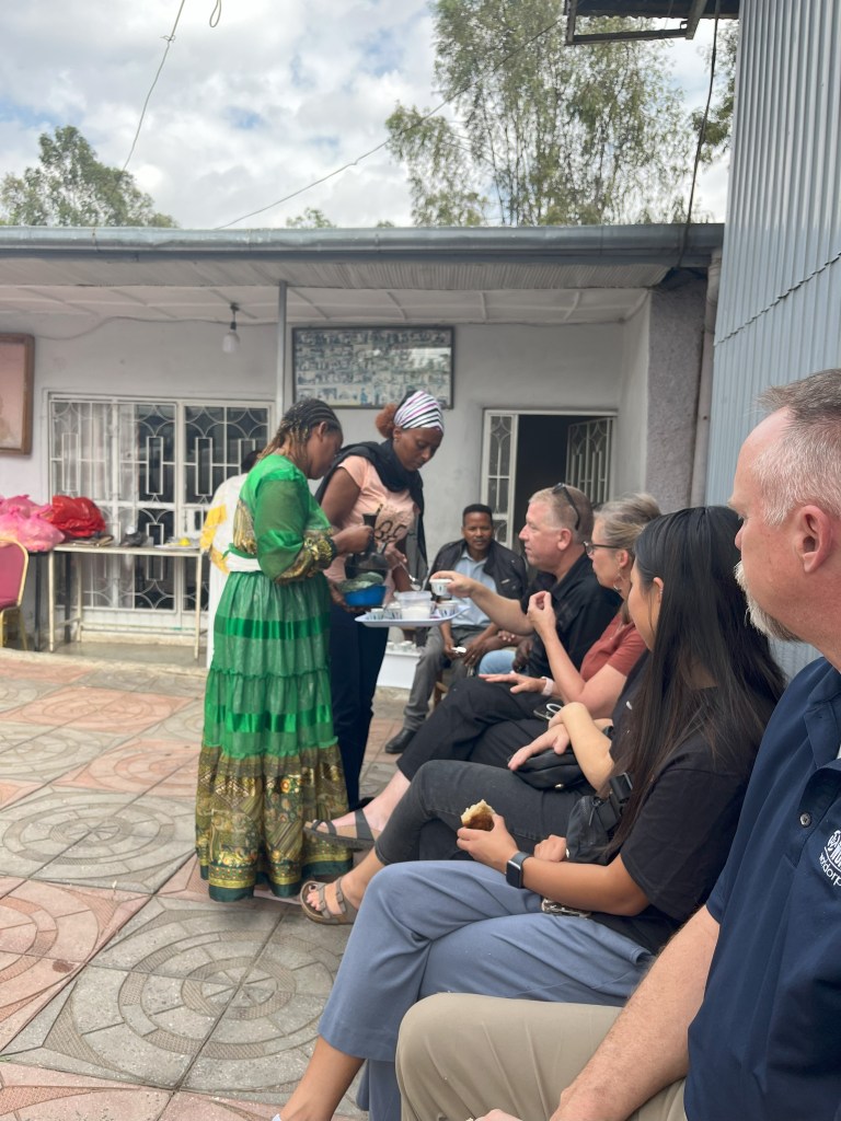We visited 3 churches connected with World Orphans and their strategy for home based care. Each church was unique, but each church welcomed us with a coffee ceremony (Coffee is big in Ethiopia!). This special hospitality involved a large loaf of bread, popcorn, and of course, Ethiopian coffee (very strong, served in a shot-like glass). From a western perspective, one hurdle was the fact that Ethiopians typically eat with their hands. The bread and popcorn were passed around the room and each person took their portion from the whole. It is a beautiful picture of unity, but a challenge to those of us who struggle with germ phobia. Each church had beautiful testimonies of transformed lives and families preserved through the work of World Orphans through the local churches. I found the Ethiopian people to be so beautifully gentle and genuine. I have much respect for the pastors ministering there.